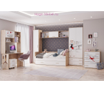 Навесная секция Бланка предназначена для размещения над кроватью в детской комнате. Полка длиной 2 метра с двумя открытыми и одним закрытом отделением.