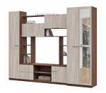 Недорогая гостиная Марта в светлых тонах сочетает в себе сразу несколько предметов мебели: платяной и бельевой шкафы и тумбу под ТВ с полками. Такая стенка для гостиной позволит значительно сэкономить на покупке мебели в гостиную.