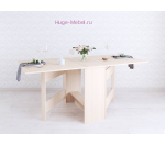 Недорогой стол книжка в цвете дуб молочный (светлое дерево). Стол имеет 3 положения: полностью сложенный, разложенный наполовину или полностью разложенный. Устанавливается на пластиковые подпятники, предохраняющие напольные покрытия от повреждения.
