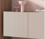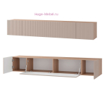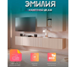 Изящная настенная тумба шириной 213 см из серии мебели для гостиной Эмилия. Навесная тумба с откидной дверцей в центре и двумя распашными дверцами по бокам. Тумбу ТВ Эмилия ШКН-03 можно совместить с настенным модулем из той же серии.