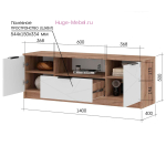 - Размеры ТВ тумбы (ШхВхГ): 1400х500х400 мм;