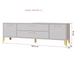Тумба для телевизора шириной 180 см с высокими опорами. Тумба Парус-13 с двумя выдвижными ящиками и двумя закрытыми полками. Тумба ТВ серого цвета с золотой фурнитурой. Ящики полного выдвижения и петли с доводчиками обеспечат долгий срок службы.