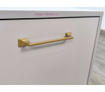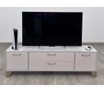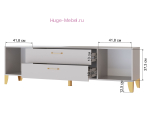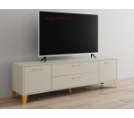 Тумба для телевизора шириной 180 см с высокими опорами. Тумба Парус-13 с двумя выдвижными ящиками и двумя закрытыми полками. Тумба ТВ светлого бежевого цвета кашемир и золотой фурнитурой. Ящики полного выдвижения и петли с доводчиками обеспечят долгий срок службы.