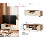 Тумба для ТВ шириной 120 см подходит для гостиной и спальни. Небольшие размеры и современное сочетание цветов позволяет вписать тумбу в любой интерьер. Тумба для телевизора с выдвижным ящиком и двумя распашными дверцами которые можно открыть нажатием.