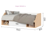 - Кровать односпальная с ящиком, размер спального места 80х190 см, общий размер кровати: 1940х660х850 мм, матрас не входит в стоимость;