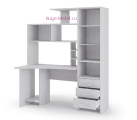 Недорогой компьютерный стол белого цвета с пеналом и множеством полок поможет организовать домашний офис или рабочее место учащегося.