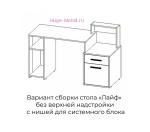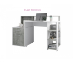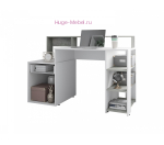 Недорогой компьютерный стол для создания комфортного рабочего места современном сочетании белого и серого цветов. С одной стороны столы  - тумба с распашным фасадом и выдвижным ящиком, которую можно использовать под принтер, с другой - удобная секция с открытыми полками, которая легко трансформируется в отдельное место для системного блока. При использовании верхней надстройки появляется дополнительное место для размещения важных мелочей.