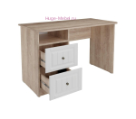 Недорогой письменный стол входит в серию мебели для спальни и детской Богуслава. Стол шириной 120 см с двумя выдвижными ящиками на шариковых направляющих можно дополнить надстройкой с открытыми и закрытыми полками. Сборка стола универсальная, на правую и левую стороны.