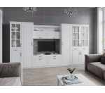 Навесной шкаф для гостиной Апполия может дополнить ТВ тумбу. Настенный шкаф с открытыми полками и откидными дверцами, которые удерживаются в открытом положении с помощью газлифта. Шкаф для гостиной можно дополнить карнизом.
