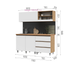 Недорогая кухня Хелен длиной 1.7 метра представляет собой готовый к монтажу комплект кухонной мебели. В стоимость кухонного гарнитура входит 2 столешницы (100 и 70 см) в цвете "Дуб вотан" толщиной 38 мм. В комплект входят 4 кухонных шкафа, размером 70 и 100 см. Кухня белого цвета с корпусом под дерево.