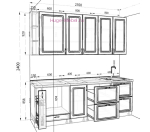 - Длина кухни: 235 см с учетом модуля для встраиваемой плиты 60 см;