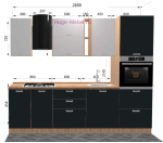 Современная и недорогая кухня длиной 2.6 метра с пеналом для духового шкафа. Кухонный гарнитур модульный и размеры кухни могут быть изменены, для составления проекта обращайтесь к нашим менеджерам.