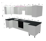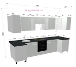 - Размер кухни (по стене): 100х340х100 см;