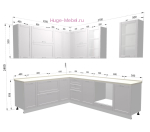 Угловая кухня с высокими шкафами белого цвета размером 270 на 220 см. Общая высота кухонного гарнитура 2,4 метра. В стоимость комплекта входит угловой шкаф под мойку и кухонный шкаф для встраиваемой духовки. Сборка всех кухонных модулей универсальная, кухню можно собрать с правым или левым углом. Кухни "Альфа" с матовыми фасадами из надежного МДФ фактурным покрытием и фрезеровкой, черными ручками и матовыми стеклами. Модульную кухню можно купить как готовый комплект мебели или внести необходимые изменения в размеры и наполнение шкафов. Для расчета стоимости кухни на заказ обратитесь к менеджерам магазина.