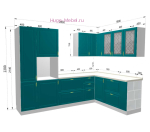 Недорогая угловая кухня 280 на 180 см с двумя пеналами и торцевым шкафом с открытыми полками. Кухня Модена модульная и её размеры могут быть изменены в соответствии с размерами вашей кухни. Большое количество разных по размеру и форме кухонных шкафов, пеналов и буфетов позволяют составить кухонный гарнитур для помещений со сложной конфигурацией.