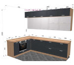 - Размер кухни: 280х200 см по стене (универсальная сборка на правую и левую стороны);