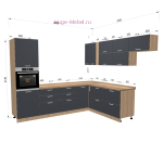 Недорогая угловая кухня размером 280х255 см с матовыми фасадами МДФ. Кухонный гарнитур включает в себя пенал для встраиваемого духового шкафа и узкий шкаф-бутылочницу с выдвижной металлической корзиной. Кухни Катрин модульные и вы сможете изменить проект по размерам вашей кухни, добавить, убрать или заменить кухонные шкафы.