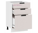 Кухонный шкаф нижний с тремя ящиками для модульной кухни Сахара с фасадом МДФ в цвете холст мокко.