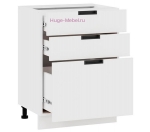 Кухонный шкаф нижний с тремя ящиками для модульной кухни Сахара с фасадом МДФ в цвете холст белый.