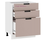 Кухонный шкаф нижний с тремя ящиками для модульной кухни Сахара с фасадом МДФ в цвете холст латте.