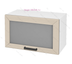 Горизонтальный кухонный стеклянный шкаф для модульной кухни Альфа с фасадом Стекло + МДФ в цвете брюле. Размеры шкафа: