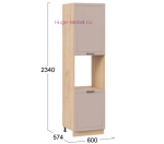 Пенал кухонный напольный высокий с нишей для модульной кухни Альфа с фасадом МДФ в цвете латте и корпусом под дерево. Размеры шкафа: