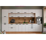 Пенал кухонный высокий с нишей для модульной кухни Призма с фасадом МДФ в цвете белый суперматовый и корпусом под дерево.