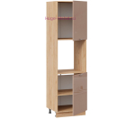 Пенал кухонный напольный с нишей для модульной кухни Ксения с МДФ фасадами в цвете кофе с молоком глянец и корпусом под дерево. Размеры пенала под духовку: