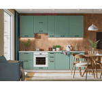 Пенал кухонный с нишей и ящиками высокий для модульной кухни Призма с фасадом МДФ в цвете бриз суперматовый (морской зеленый).