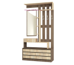 Удобная напольная вешалка для прихожей Ямайка с зеркалом, тумбой для обуви, крючками для одежды и полками. Вешалка подходит для небольших прихожих и узких коридоров.