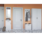 Комплект мебели в прихожую Апполия общей шириной 210 см состоит из отдельных модулей каждый из которых можно расположить по своему усмотрению. В стоимость прихожей входит узкий шкаф для одежды глубиной 40 см который можно заменить на более вместительный шкаф глубиной 54 см из той же серии. Модульную прихожую Апполия белого цвета можно дополнить пеналом с полками или комодом. Распашной шкаф для одежды можно укомплектовать декоративным карнизом.
