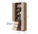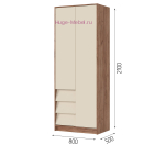 - 2-х створчатый шкаф с 3 выдвижными ящиками, (ШхВхГ): 800х2100х500 мм;
