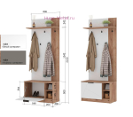Небольшая прихожая шириной 80 см представляет собой вешалку с тумбой. Вешалка с 5 крючками для одежды и полкой, тумба с откидной дверцей и открытыми полками для хранения обуви и аксессуаров. Прихожая может быть дополнена шкафами Орегон в том же цвете. Прихожая выпускается в двух цветовых сочетаниях: с фасадом в цвете асфальт и с белым фасадом. Фасады из МДФ с матовым покрытием и фрезеровкой в виде ассиметричных линий.