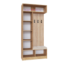 Прихожая Руэлла с вешалкой, мягким сиденьем и полками за зеркальной створкой. Прихожая Руэлла модульная, центральную секцию можно дополнить шкафами и торцевыми полками. Высота прихожей 2.2 метра позволяет использовать всё пространство для хранения. Прихожая выпускается фабрикой Тэкс в двух цветах: с белыми и серыми матовыми фасадами. Роль ручек выполняют торцы створок. Ширина пенала 40 см, в комплекте три крючка для одежды, верхняя створка откидная с газлифтом, высота верхнего отсека 38 см, нижние дверцы распашные.