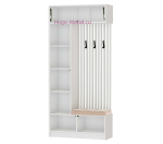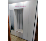 Центральная секция прихожей Руэлла в белом цвете с вешалкой, мягким сиденьем и полками за зеркальной створкой. Ширина прихожей 1 метр. Прихожая Руэлла модульная, центральную секцию можно дополнить шкафами и торцевыми полками. Высота прихожей 2.2 метра позволяет использовать всё пространство для хранения. Прихожая выпускается фабрикой Тэкс в нескольких цветах. Роль ручек выполняют торцы створок. Ширина пенала 40 см, в комплекте три крючка для одежды, верхняя створка откидная с газлифтом, высота верхнего отсека 38 см, нижние дверцы распашные.