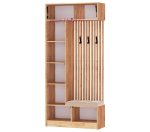 Небольшая прихожая Руэлла шириной 1 метр с вешалкой, тумбой для обуви, мягким сиденьем и зеркальным шкафом с полками. Центральная секция является частью модульной прихожей Руэлла, при желании её можно дополнить шкафами в том же цвете. Высота прихожей 220 см, всю высоту можно использовать для хранения: верхние антресоли с откидными дверцами. Створки прихожей укомплектованы толкателями и дверцы можно открыть без ручек.