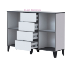 Недорогой комод шириной 130 см с 4 выдвижными ящиками и двумя дверцами. Комод белого цвета с контрастной отделкой в цвете графит. Комод подходит для мебели в гостиную Амара и сочетается с другими предметами серии.
