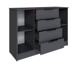 Длинный комод 1.3 метра с 4 выдвижными ящиками в центре и двумя дверцами по бокам. Вместительный комод высотой 92 см в цвете серый графит с полностью закрытой системой хранения, за распашными дверцами по одной полке. Комод входит в серию мебели Мадрид, подходит для любого помещения и сочетается со шкафами, тумбами, стеллажами в том же цвете. Комоды Мадрид выпускаются в нескольких цветах и размерах, оснащены современной фурнитурой с механизмом полного выдвижения.