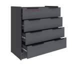 Недорогой комод с 4 ящиками Мадрид в цвете графит серый. Комод шириной 85 см со стильными накладными ручками черного цвета подходит для спальни, прихожей, гостиной и детской и сочетается со всеми предметами серии Мадрид. Комоды выпускаются в нескольких цветах, которые можно комбинировать в одном помещении. Комод оснащен современными шариковыми направляющими полного выдвижения, которые обеспечивают тихое открывание ящиков и увеличивают срок службы комода.