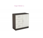 Недорогой комод Бася с тремя ящиками и дверцей с полкой внутри. Комод подходит для спальни Бася и сочетается с другой мебелью фабрики Стендмебель в том же цвете.