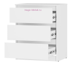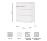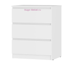 Недорогой комод белого цвета с тремя выдвижными ящиками. Комод небольшого размера, его ширина всего 60 см. Ящики комода выдвигаются бесшумно за счет шариковых направляющих. Благодаря небольшим размерам и универсальному цвету комод можно разместить в гостиной, спальне и детской комнате. Комод Симпл входит в одноименную серию мебели с лаконичным дизайном и выпускается в двух цветах, белом и графитовом сером.