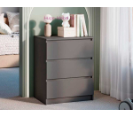 Современный и недорогой комод серого цвета с тремя выдвижными ящиками. Комод небольшого размера, его ширина всего 60 см. Ящики комода выдвигаются бесшумно за счет шариковых направляющих. Благодаря небольшим размерам и универсальному цвету комод можно разместить в гостиной, спальне и детской комнате. Комод Симпл входит в одноименную серию мебели с лаконичным дизайном и выпускается в двух цветах, белом и графитовом сером.