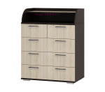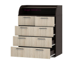 Недорогой комод Стандарт 1 является одним из наиболее популярных решений от фабрики БТС. Классический дизайн отличается высокой функциональностью: в одной модели вы найдете и широкие и узкие ящики,, а также открытые полки, на которых вы сможете хранить наиболее часто используемые вещи.