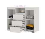 Большой комод с тремя выдвижными ящиками и двумя дверцами из серии мебели Хелен. Удобный комод длиной 120 см выпускается в трех цветах: белом и сочетании белого и дуба, сочетании серого и дуба. Комод оснащен шариковыми направляющими полного выдвижения.