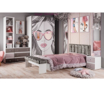 Недорогая односпальная кровать с мягкой спинкой серого цвета. Кровать Мемори входит в серию подростковой мебели и может быть приобретена в комплекте со шкафом-купе, прикроватной тумбой, комодом и туалетным столиком. Кровать имеет оптимальные комфортные размеры, ширина спального места 120 см.