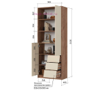 - Шкаф стеллаж с открытыми и закрытыми полками и с 3 выдвижными ящиками (ШхВхГ): 800х2100х400 мм.