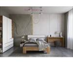 Недорогой комплект мебели для спальни Хелен выпускается в двух цветах: полностью белый и сочетание белого и дуба крафт. Мебель Хелен представлена большим выбором модулей, в том числе угловыми шкафами, комодами, мебелью для прихожей и ТВ-тумбами. Такой выбор дает возможность составить собственный комплект мебели или полностью обставить небольшую квартиру. В стоимость спального гарнитура Хелен К1 входят: