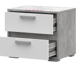 Прикроватная тумба с двумя выдвижными ящиками в сочетании серого и белого цвета. Выдвижные ящики на шариковых направляющих полного выдвижения. Тумба подходит к кроватям Денвер.