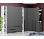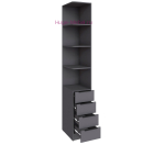 Угловое завершение для шкафов Мадрид в цвете графит с открытыми полками и 4 выдвижными ящиками. Завершение для шкафа собирается на левую сторону и выпускается в нескольких цветах, включая серый графит.