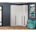 Угловой шкаф белого цвета хорошо дополняет другие шкафы Мадрид. Шкаф со скошенным углом и одной створкой внутри пространство которого пространство делится на отсек с полками и отсек со штангой для одежды на плечиках. Угловой шкаф без зеркал входит в серию шкафов которые фабрика ТЭКС выпускает в нескольких размерах и цветах.